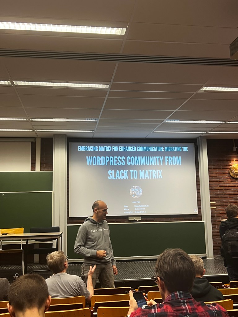 On the second day, mainly I joined the Designing Futures of FOSS Content Management with the Open Website Alliance devroom and Matrix devroom where I had the opportunity to join two talks from two collegues from Automattic: